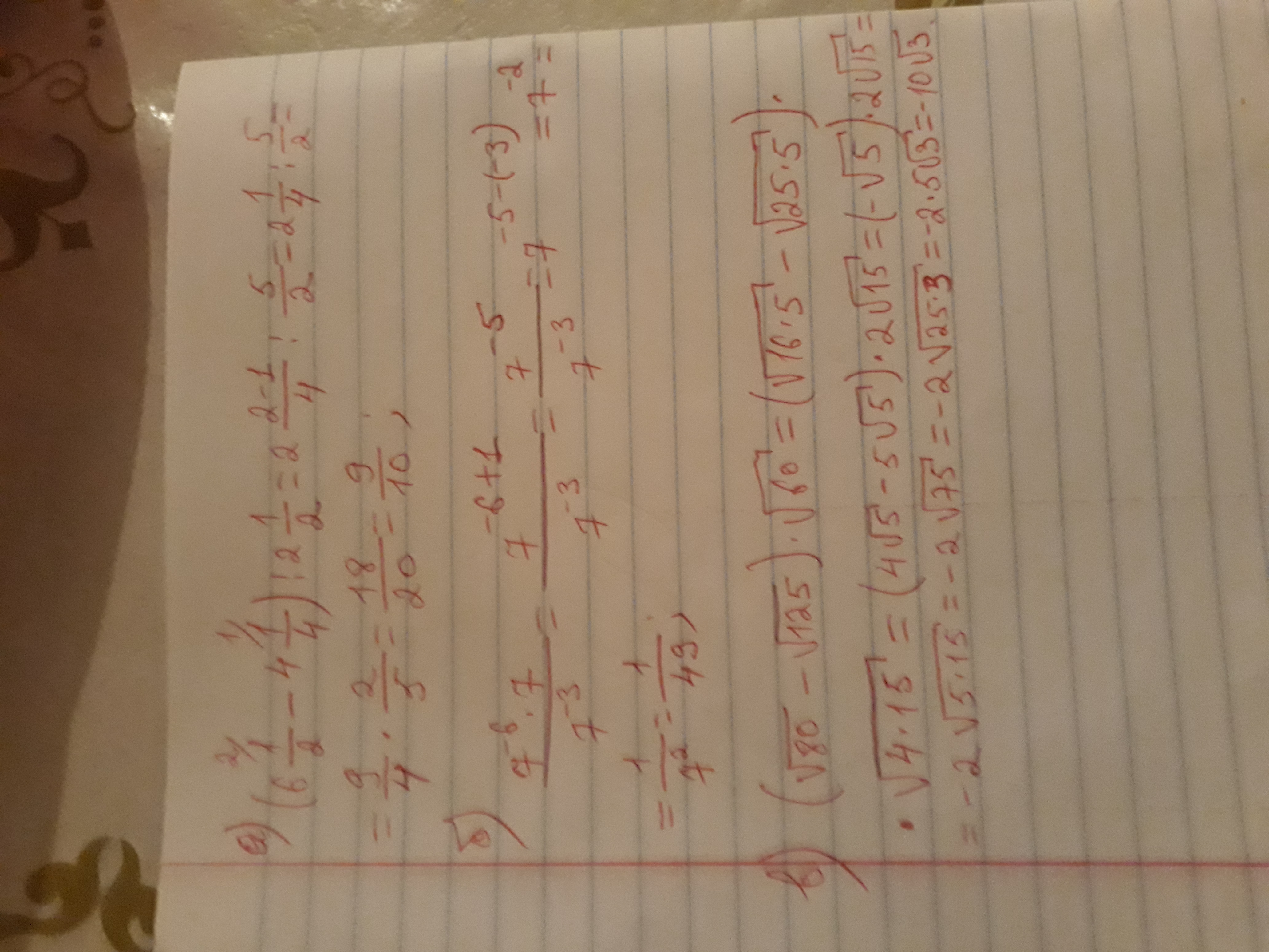 две целых одна четвертая разделить на две целых одна вторая ровно девять десятых