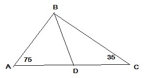 В Треугольнике АВС проведена бессекриса ВD, Угол А равен 75°, угол С равен 35°