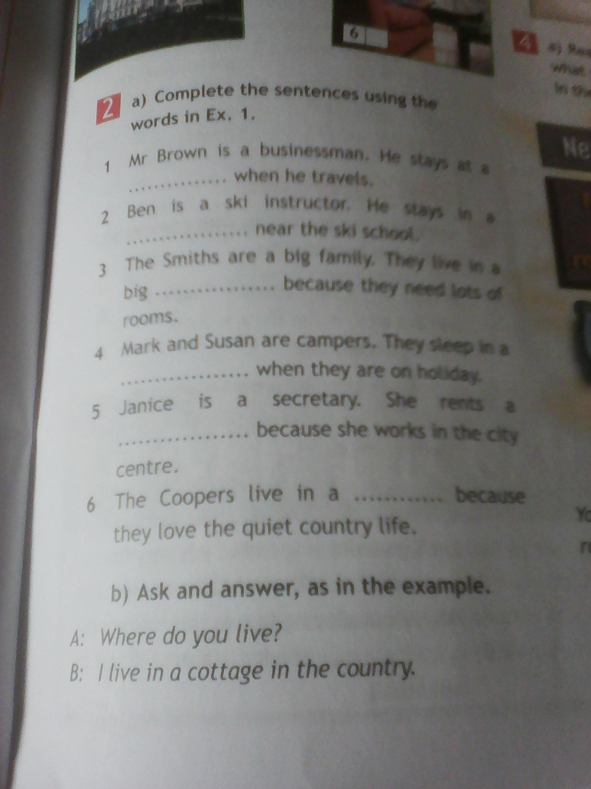 тебе нужно вставить слова из упражнения №1 в места где пропущено слово.
