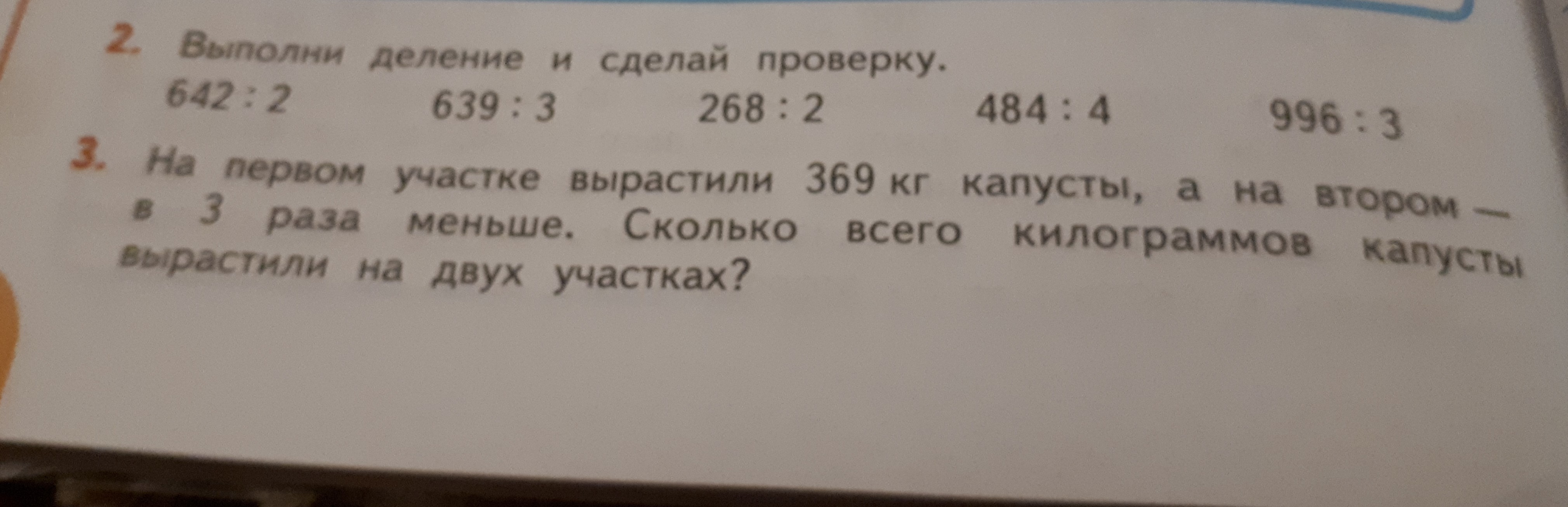 1) 369:3 = 123 (кг) - на втором участкое