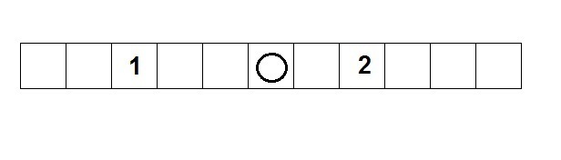 В итоге фишка оказалась на 2 клетки правее средней.