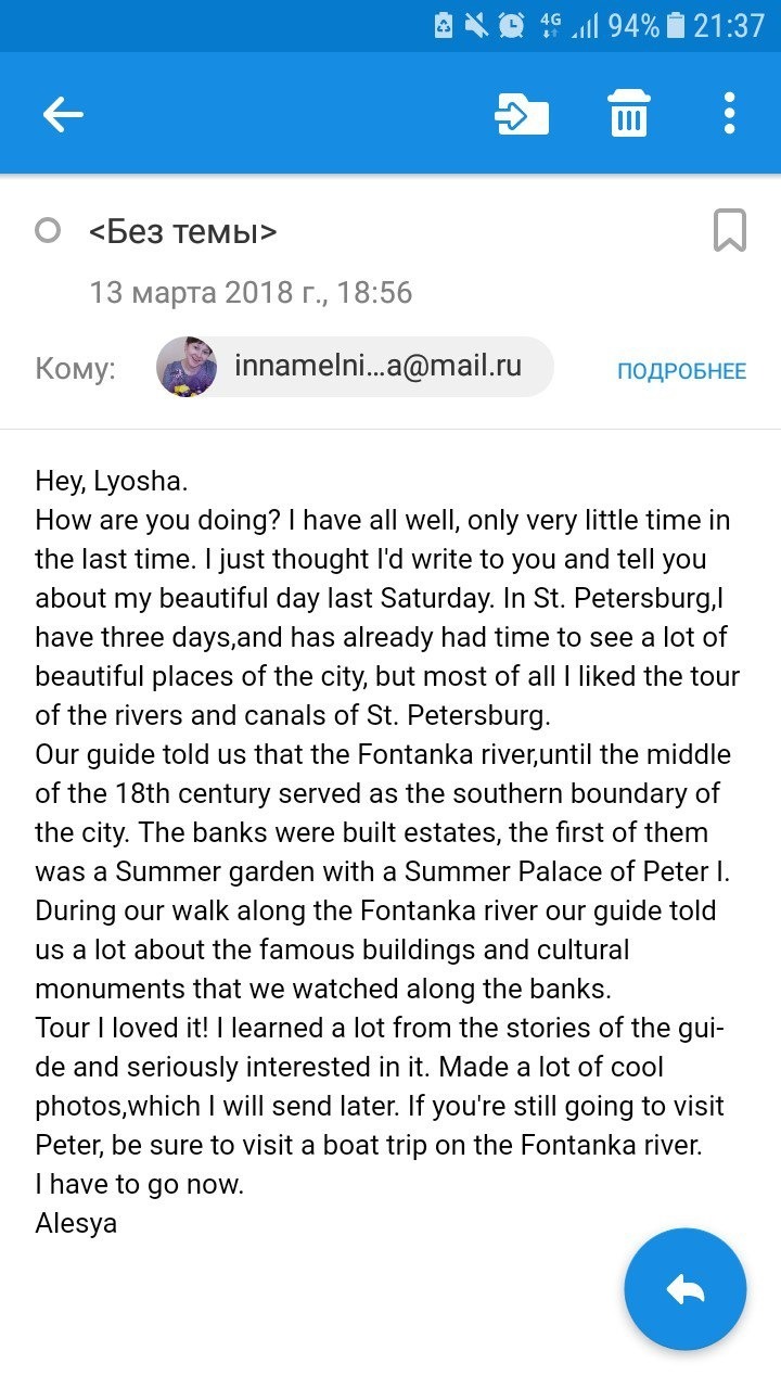 Last weekends I have been in Ukraine. I visited Kiev (the capital of Ukraine). Kiev is very beautiful city. We have gone to the theatre. Also we have watched film.