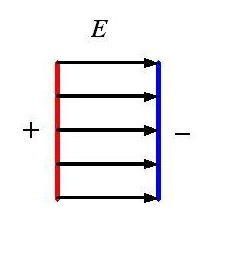 Для однородного электрического поля линии параллельны вектору Е. Линии идут от + к -