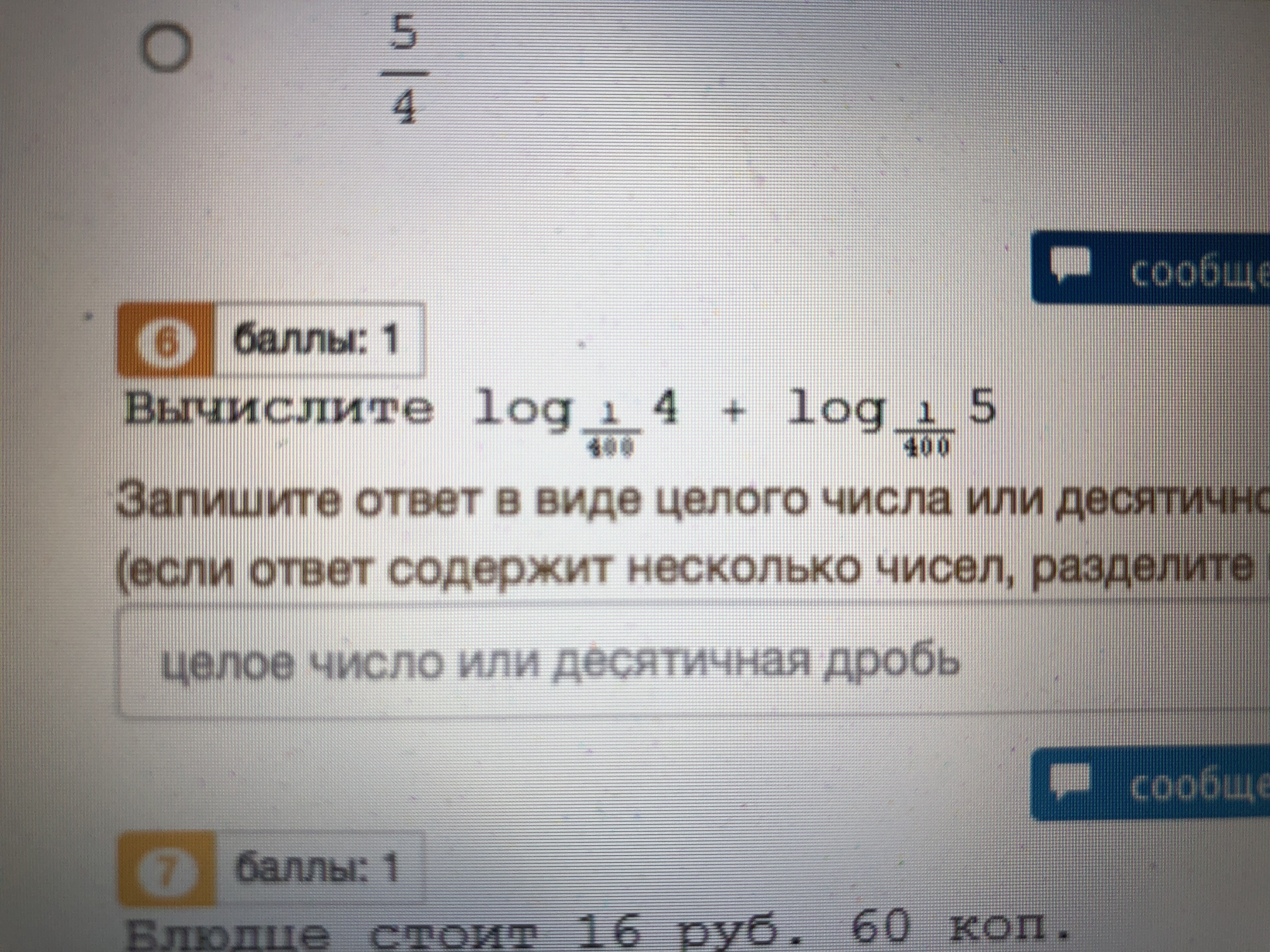 Log1/400(4*5)=log1/400(20)= - 1/2