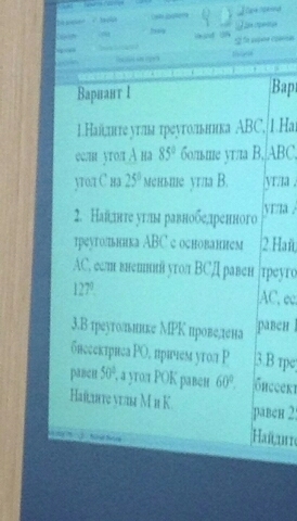 1.Найдите углы треугольника ABC,если угол A на 85° больше угла B,угол C на 25° меньше угла B