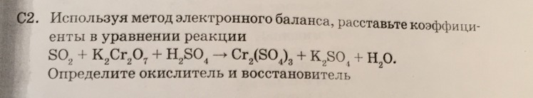 3S⁺⁴O⁻²₂+ K⁺₂Cr⁺⁶₂O⁻²₇+H⁺₂S⁺⁶O⁻²₄ = Cr⁺³₂(S⁺⁶O⁻²₄)₃ +K⁺₂S⁺⁶O⁻²₄ + H⁺₂O⁻²