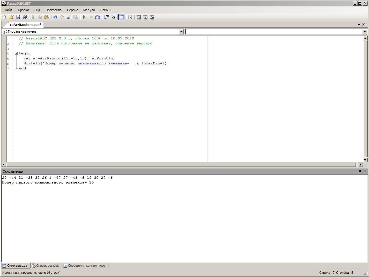 Writeln('Номер первого минимального элемента- ',a.IndexMin+1);