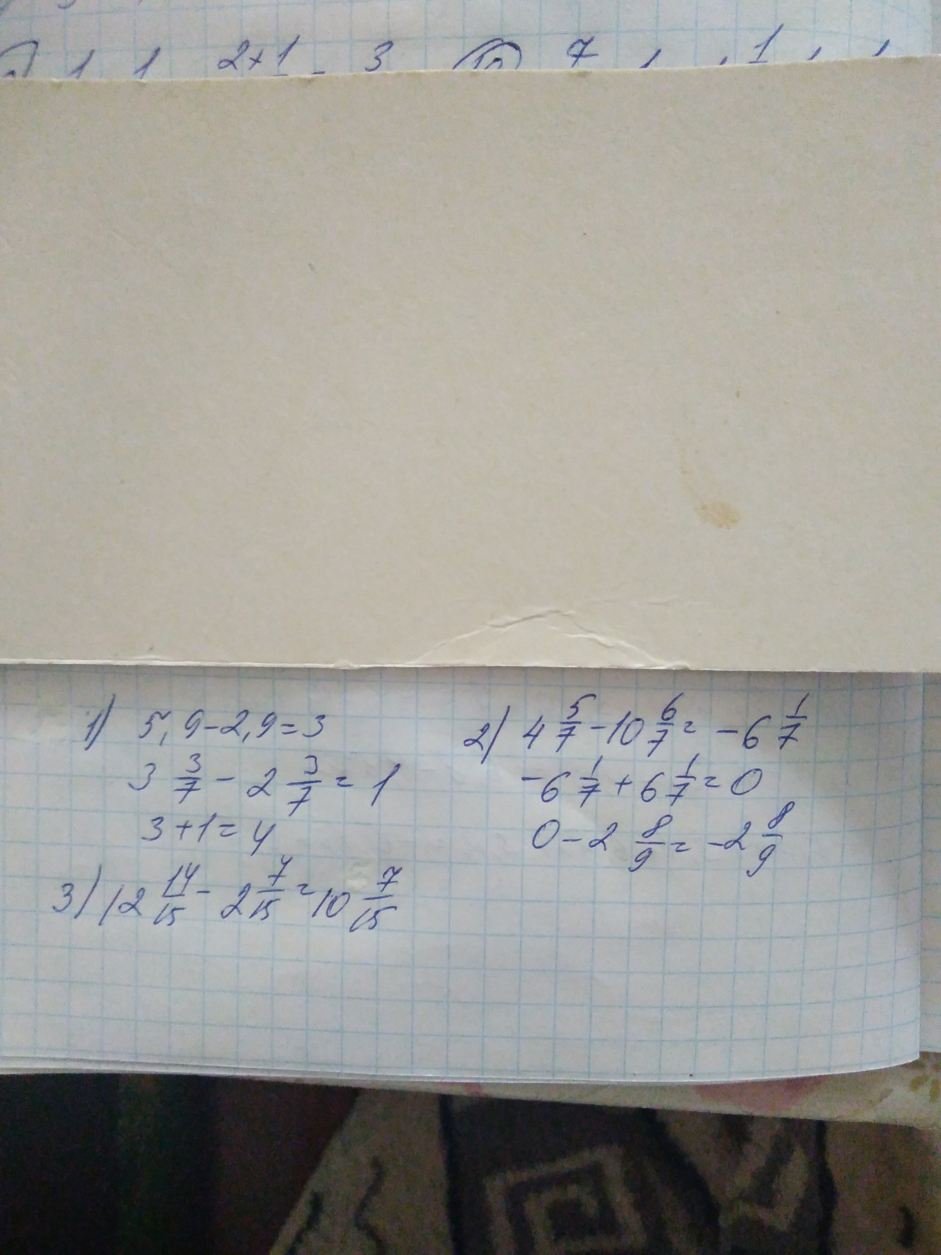 вычислите удобным способом 1)5,9 + 3 3/7-2,9-2 3/7 2) 4 5/7 -2 8/9 - 10 6/7 +6 1/7 3) 12 14/15-3 4/9 + 5 8/19- 2 7/15 - 34/7