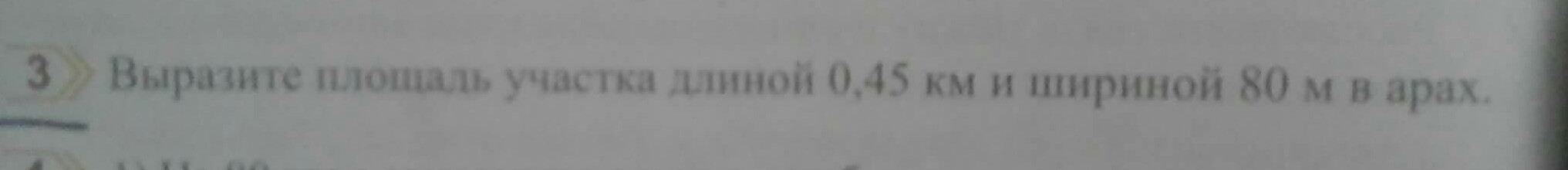 0,45 км=450м S=450*80=36000 м²=360 ар потому что 100м²=1а