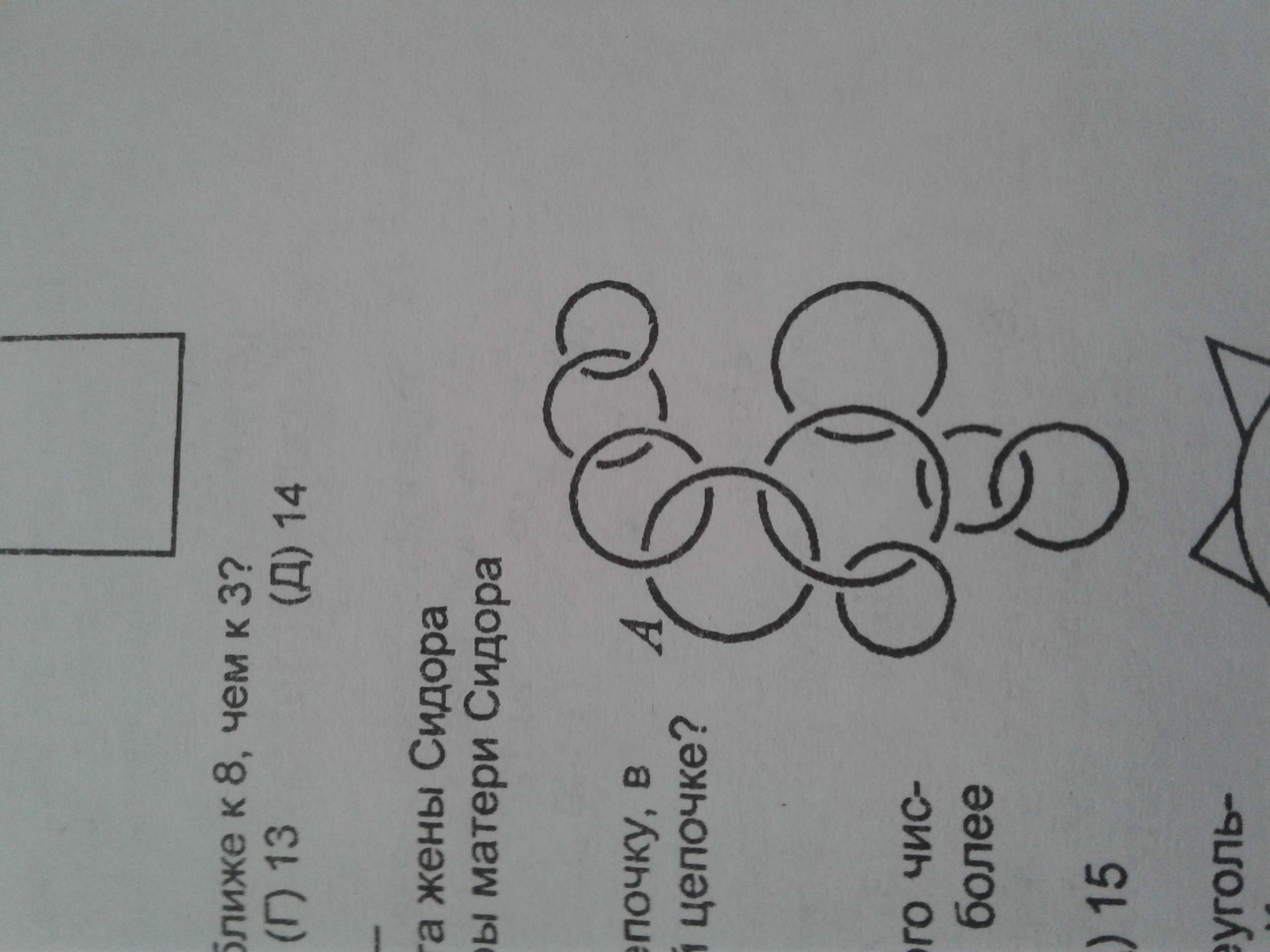 Несколько нарисованные колец образуют цепочку, в которую входит кольцо А. Сколько колец в этой цепочке?