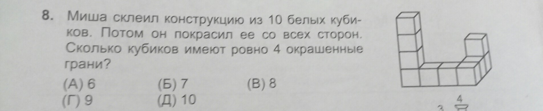 b)8 с 5 сторон будут закрашенны верхний кубик и последний который во 2 ряду