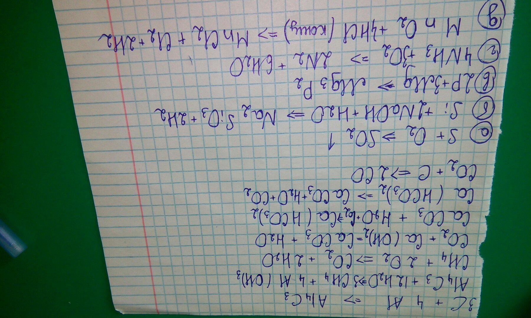 Закончите уравнения реакций: а) S + O2 = ... ; б) Si + NаОН + Н2O = ... ; в) P + Mg = ...; г) NНз + O2 = ... ; д) МпO2 + НС1(конц.)= .... Осуществите превращения: С→ А14С3 →СН4 → СO2 → СаСO3 → Са(НСO3)2 →СO2 →СО. Укажите условия протекания реакций. Закончите уравнение реакции: Сu + Н2SО4(к онц) → .... Расставьте коэффициенты с помощью электронного баланса. Укажите окислитель и восстановитель.