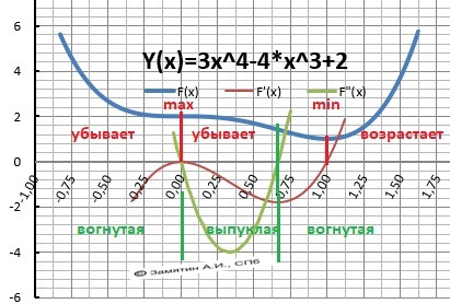 Y'(x) = 12*x³ - 12*x² = 12*x²*(x-1) = 0
