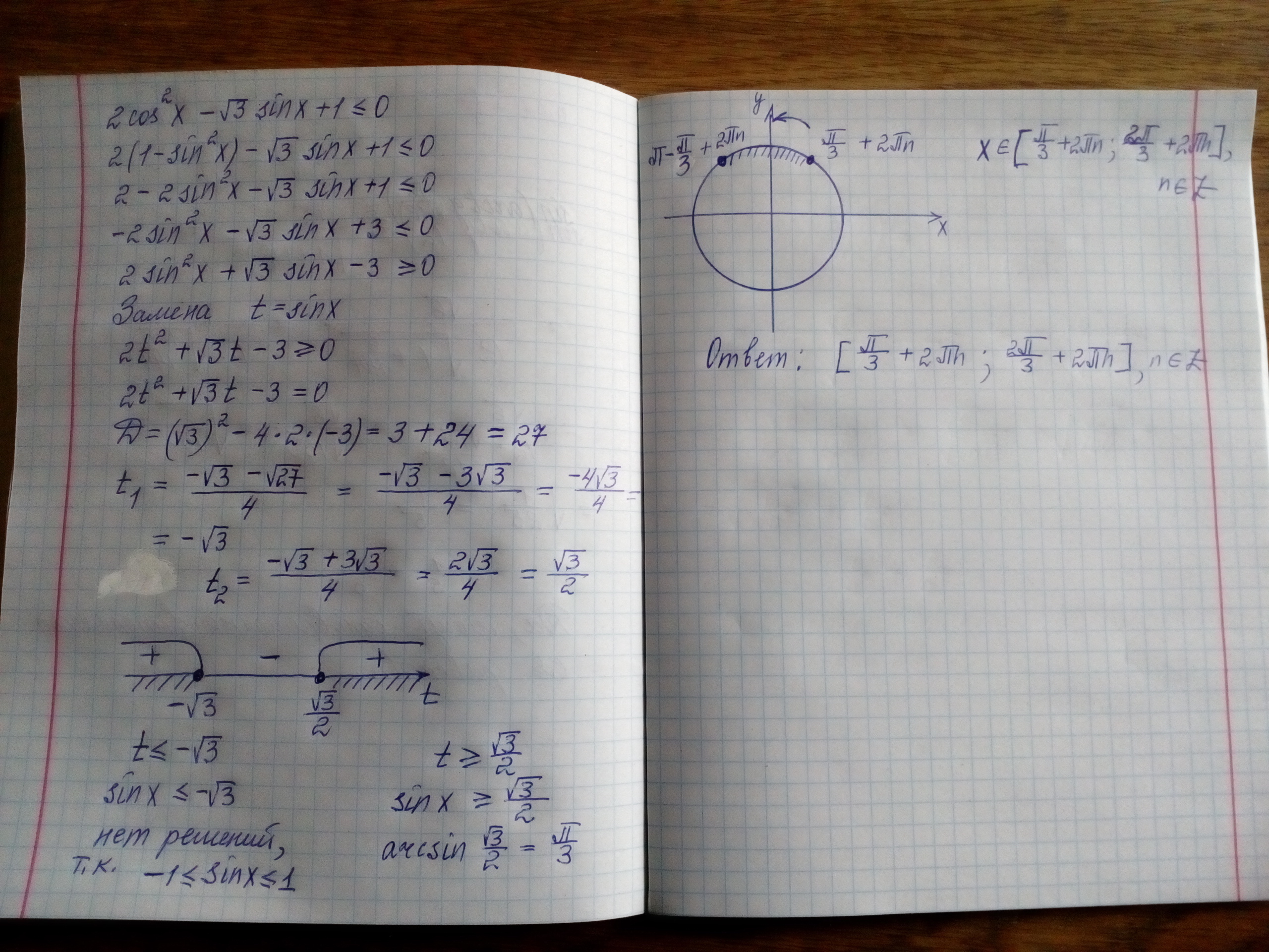 2 cos2 x – √3 sin x + 1 ≤ 0