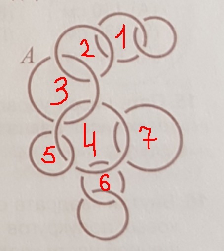 Несколько из нарисованных колец образуют цепочку, в которую входит кольцо А. Сколько колец в этой цепочке?