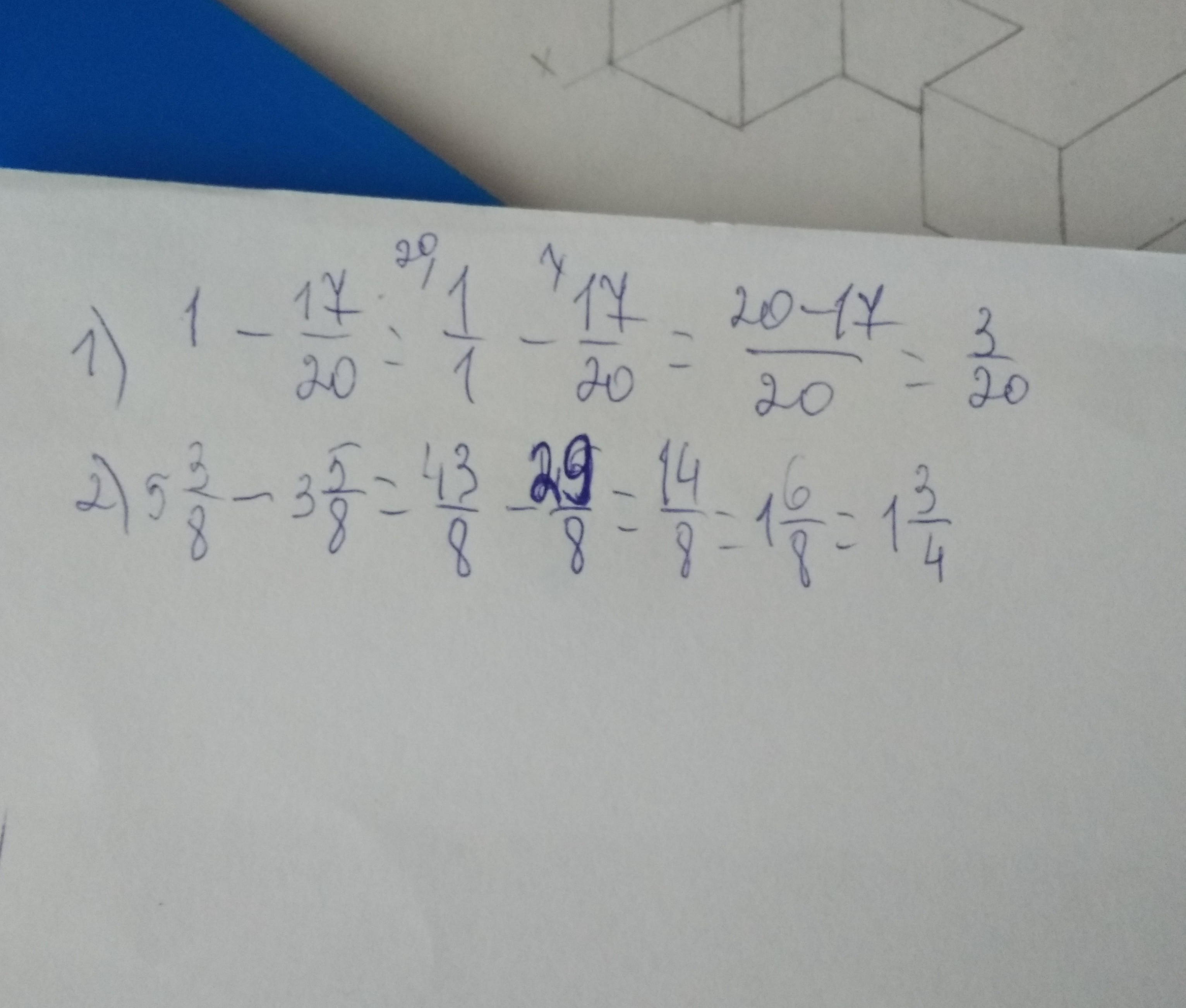 1) 1 -17/20= 20/20-17/20=3/20
