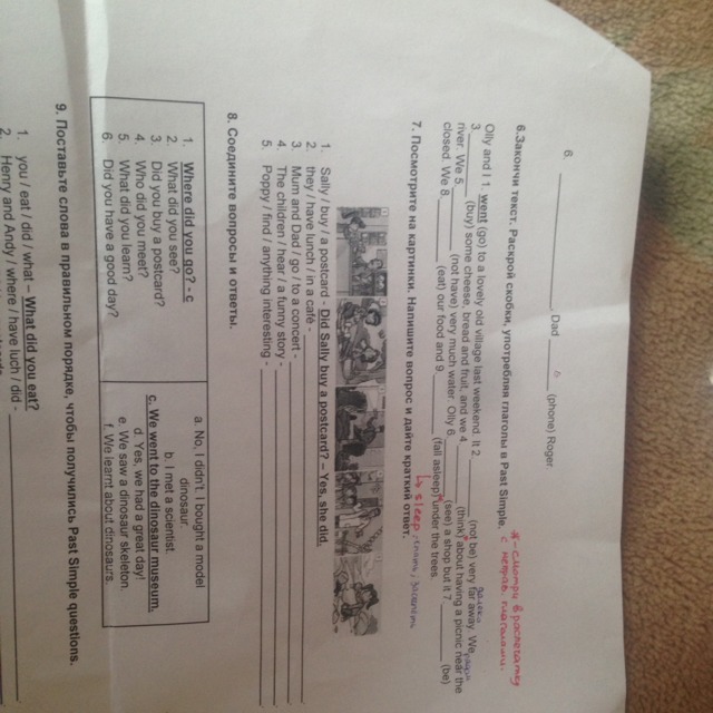 6)2.was not 3.bought 4.thought 5.did not have 6.saw 7.was 8.ate 9.fell asleep