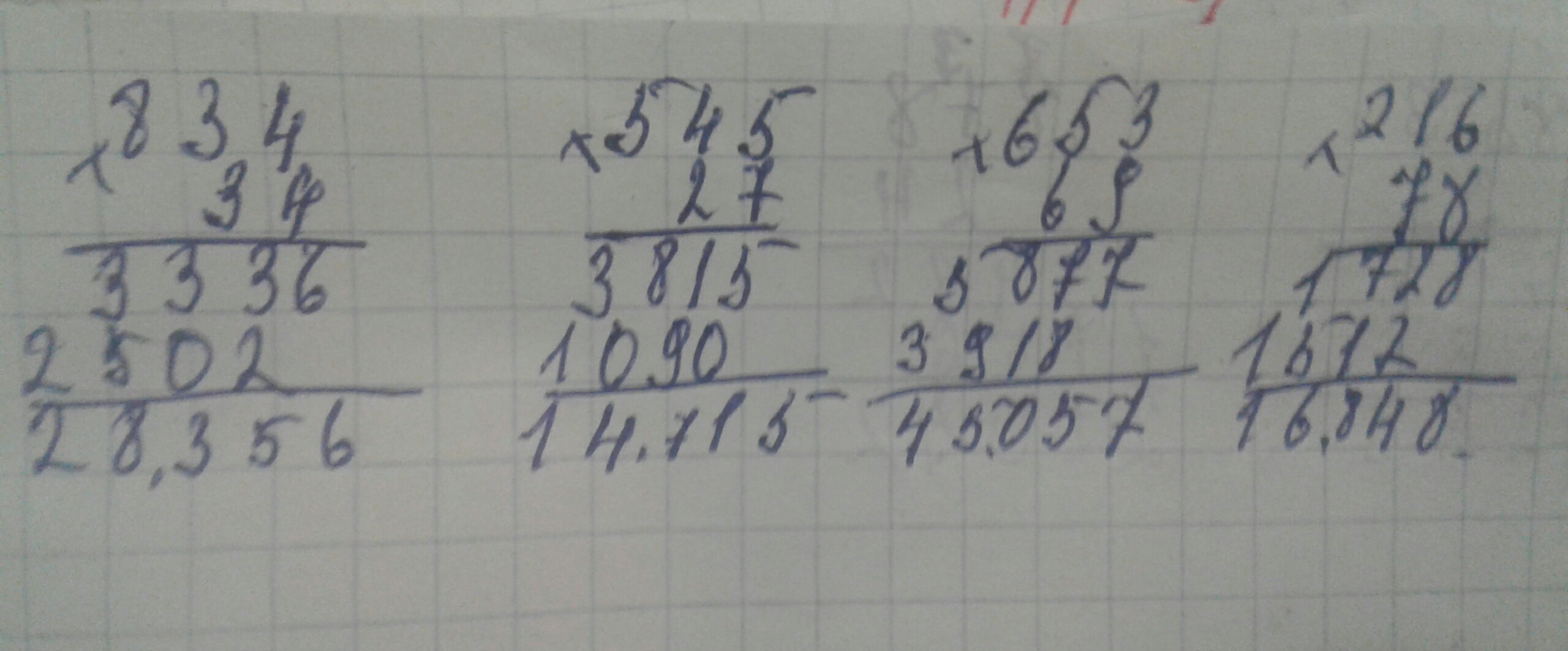 834×34=В СТОЛБИК РАСПИСЫВАЯ