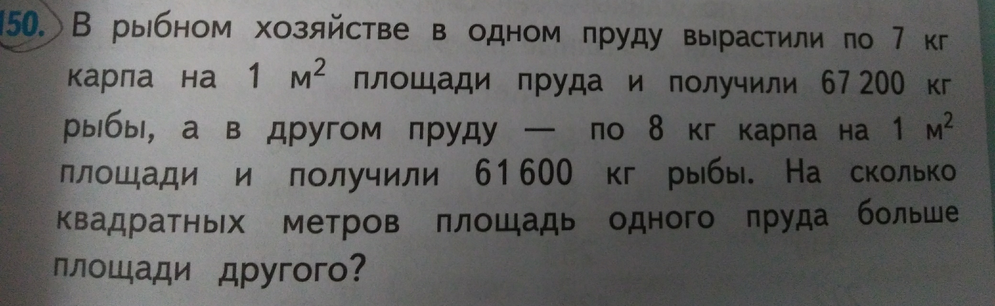 1) 67200:7=9 600 кв.м - площадь первого пруда