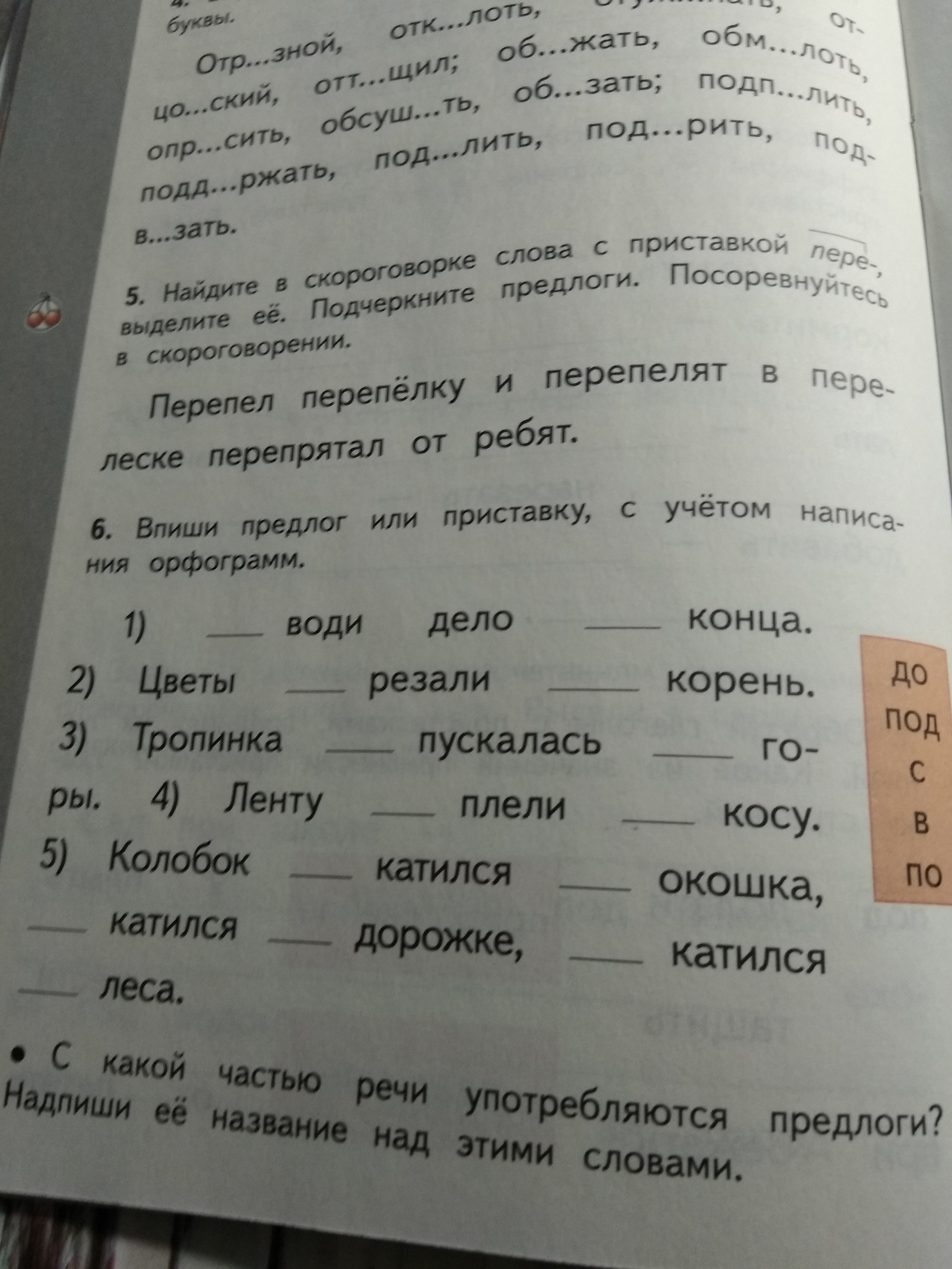 подпалить, поддержать, поделить, подарить, подвязать (приставка под).