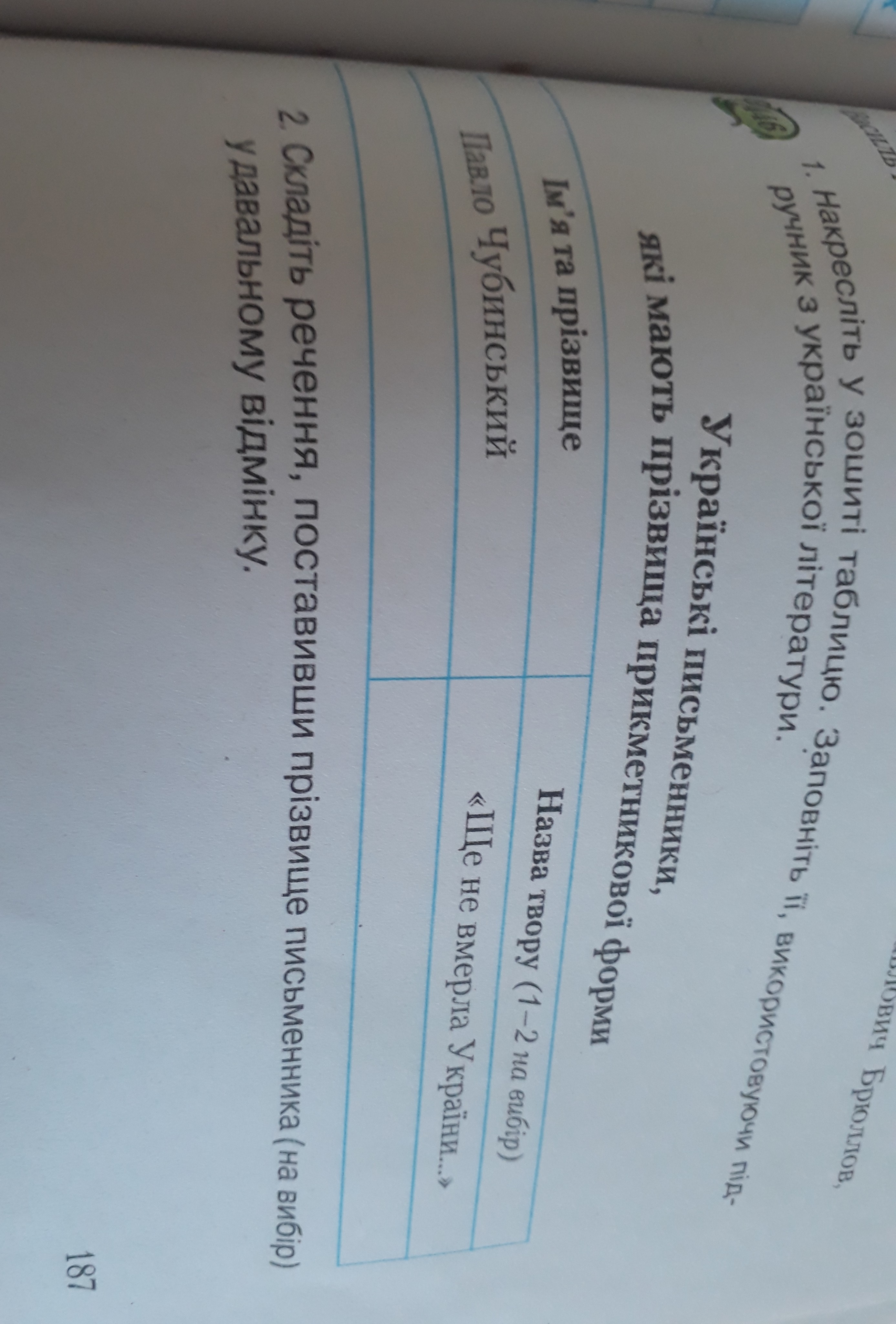 Тобі нада написати фамілію письменика яка відповідає на питання який? яка?