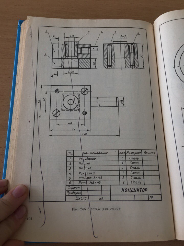 Данный разрез позволяет сократить число линий невидимого контура, которые затрудняют прочтение сложной формы детали, а также подробнее рассмотреть соединение детали 1 с деталью 2.