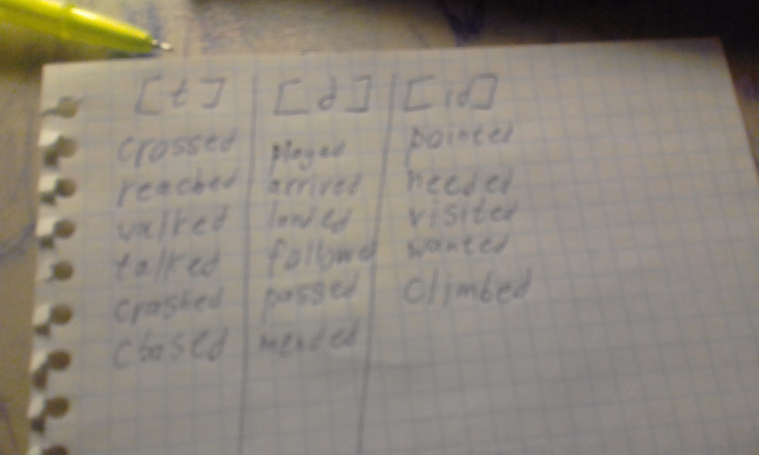 помогите пожалуйста по английскому. эти слова надо делить три столбиком [ t ] , [ d ] , [ id ] срочно пожалуйста