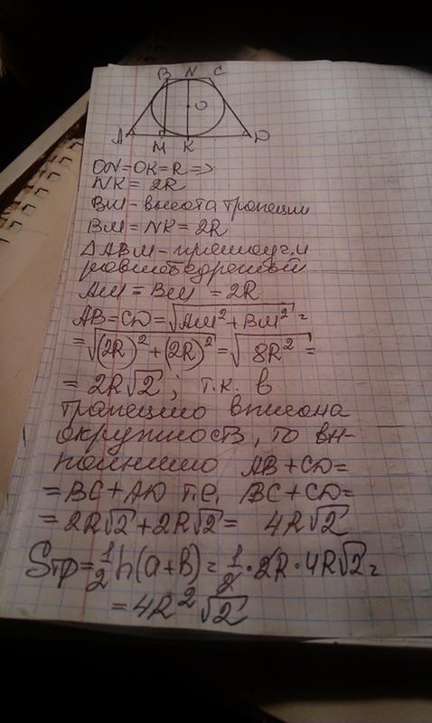 Основи рівнобічної трапеції дорівнюють 8 сантеметрів і 16 сантеметрів а гострі кути 45 знайдіть площу трапеції