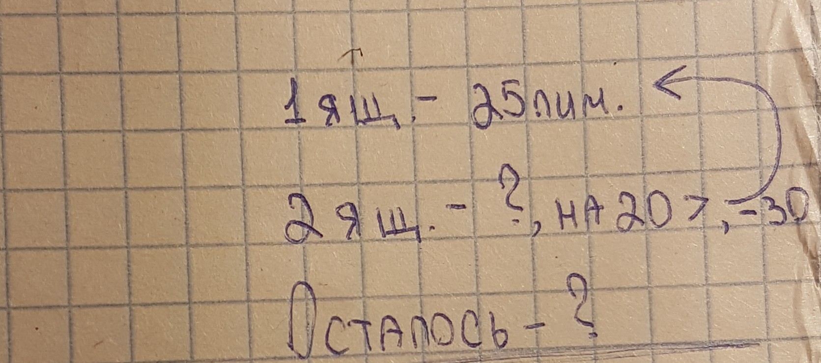 как записать условие для этой задачи?... В маленьком ящике 25 лимонов,а в большом на 20 больше.Из большого ящика взяли 30 лимонов.Сколько лимонов осталось в большом ящике?