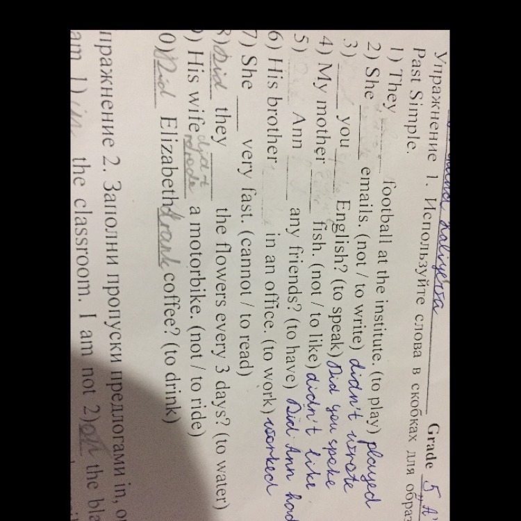 Ваше решение ошибочно. Нужно было написать предложения в PAST Simple