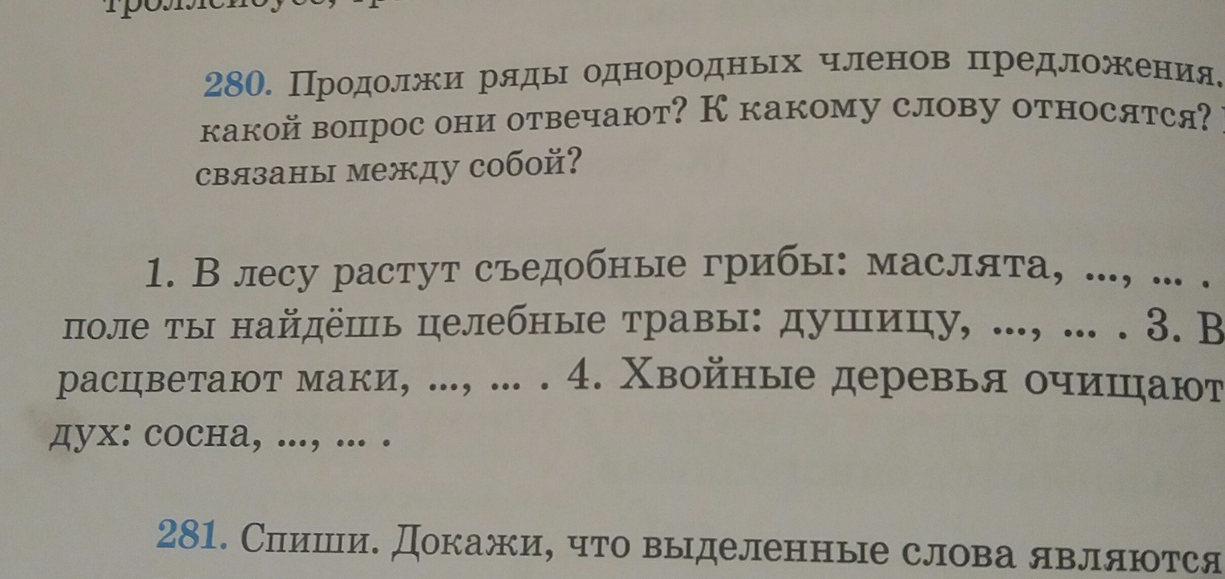 Маслята, рыжики, опята. Душицу, подорожник, полынь. Маки, ромашки, ландыши. Сосна, ель, берёза. Отвечают на вопрос (какие?).
