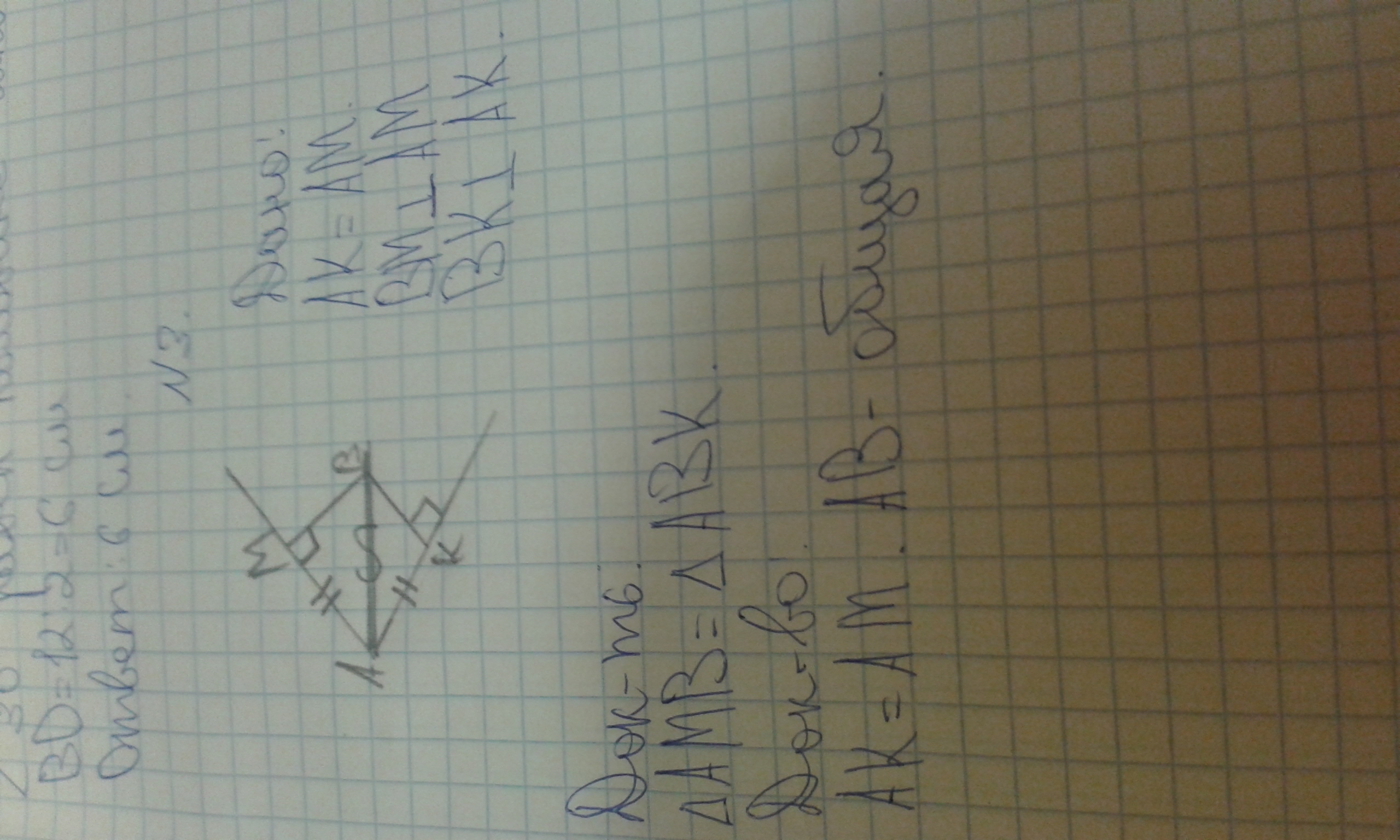 Тут можно еще добавить,что углы ВАМ и ВАК конгруэнтны,потому что АВ можно считать биссектрисой(это связано с перпендикулярностью,ортогональными проекциями точек на стороны,в общем долго объяснять)