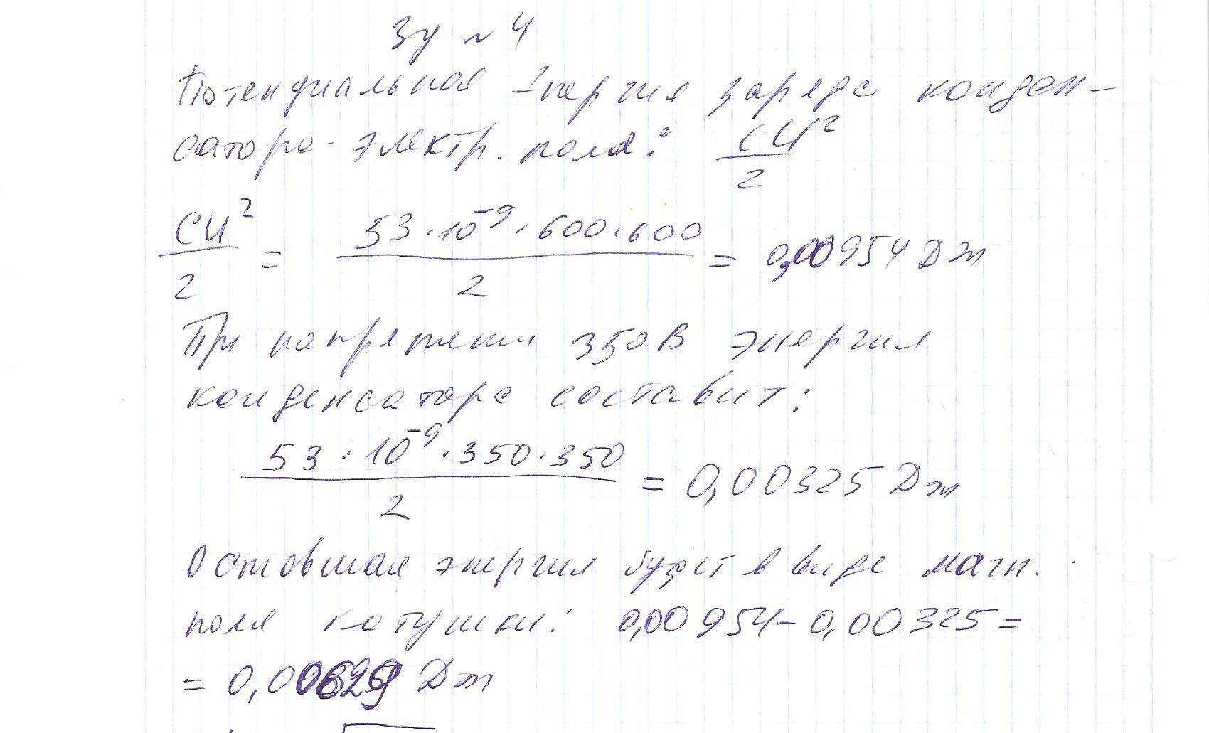 Какой будет сила тока на катушке индуктивности в тот момент времени, когда на конденсаторе в идеальном колебательном контуре напряжение равно 350 В? Изначально конденсатор был заряжен до 600 В, его емкость 53 нФ, а индуктивность катушки 3.5 мГн.