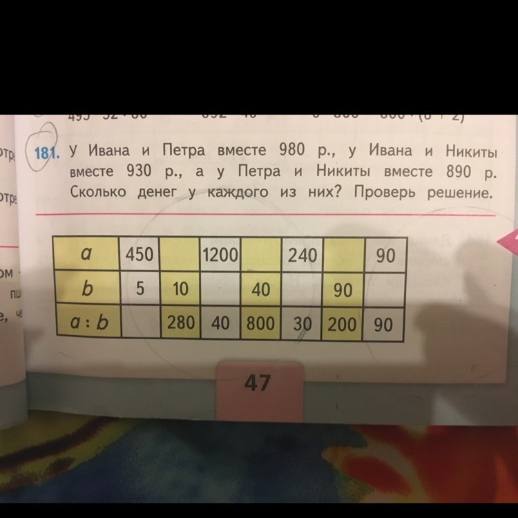 А дальше легко найти деньги Пётра и Никиты, через Уравнения с Иваном.