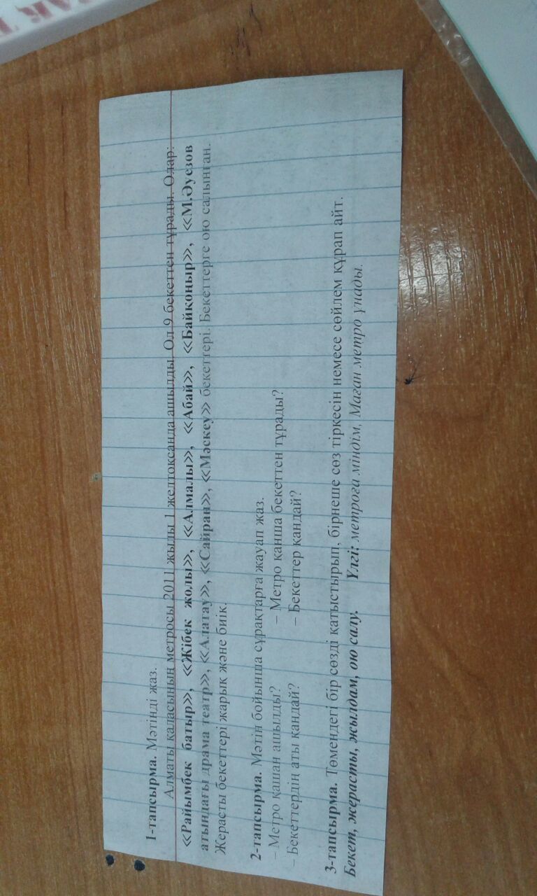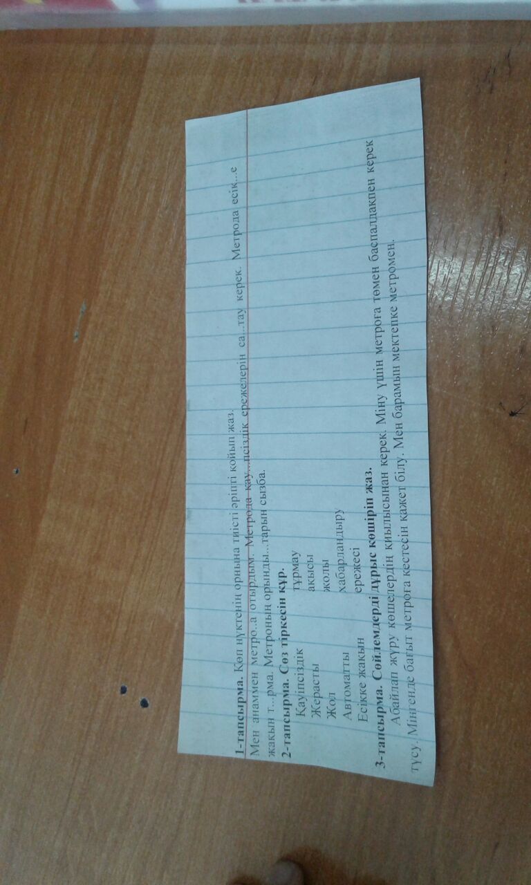 3 Көшелердің қиылысынан абайлап жүру керек. Метроға мінү үшін баспалдақпен төмен түсу керек. Метроға мінгенде бағыт кестесін білу қажет . Мен мектепке метромен барамын.