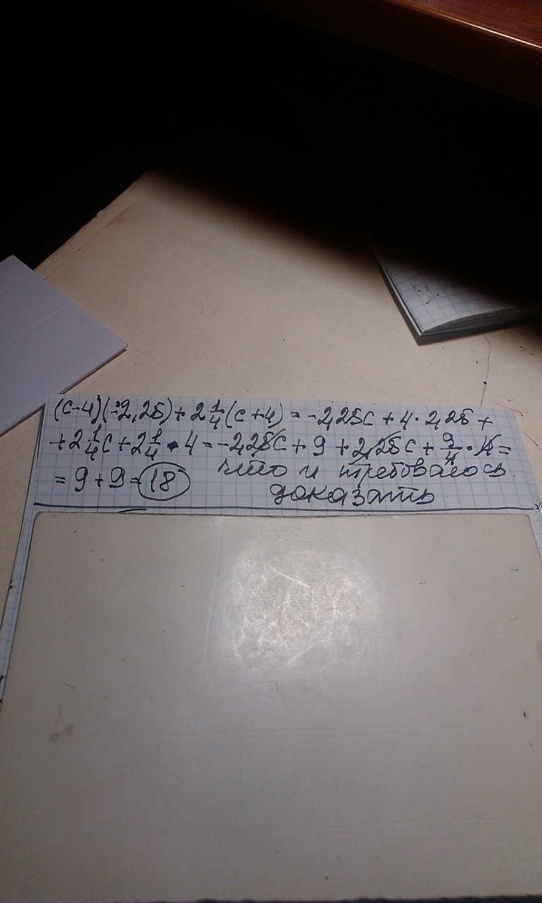 Доказать , что значение выражения (с-4)(-2,25)+2 целых одна четвертая (c+4) не зависит от значения c.