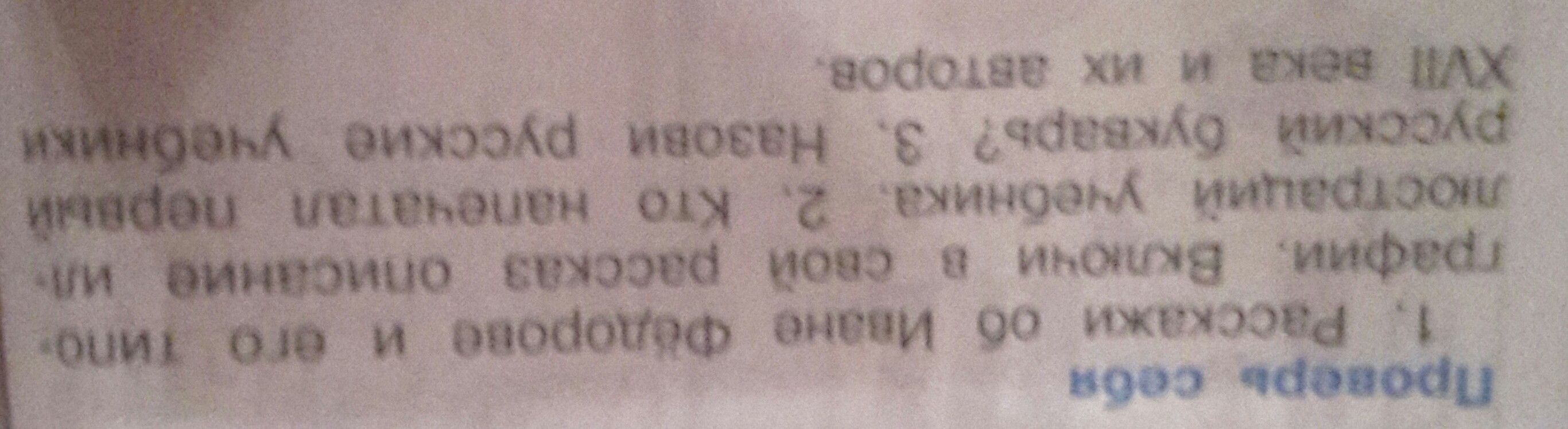 3. Первый русский учебник была русская азбука, которую учили по букварю ВАСИЛИЯ БУРЦОВА. Его переиздавали несколько раз.Потом появилась ГРАММАТИКА МЕЛЕТИЯ СМОТРИЦКОГО. В КОНЦЕ ВЕКА БЫЛ НАПЕЧАТАН БУКВАРЬ КАРИОНА ИСТОМИНА,