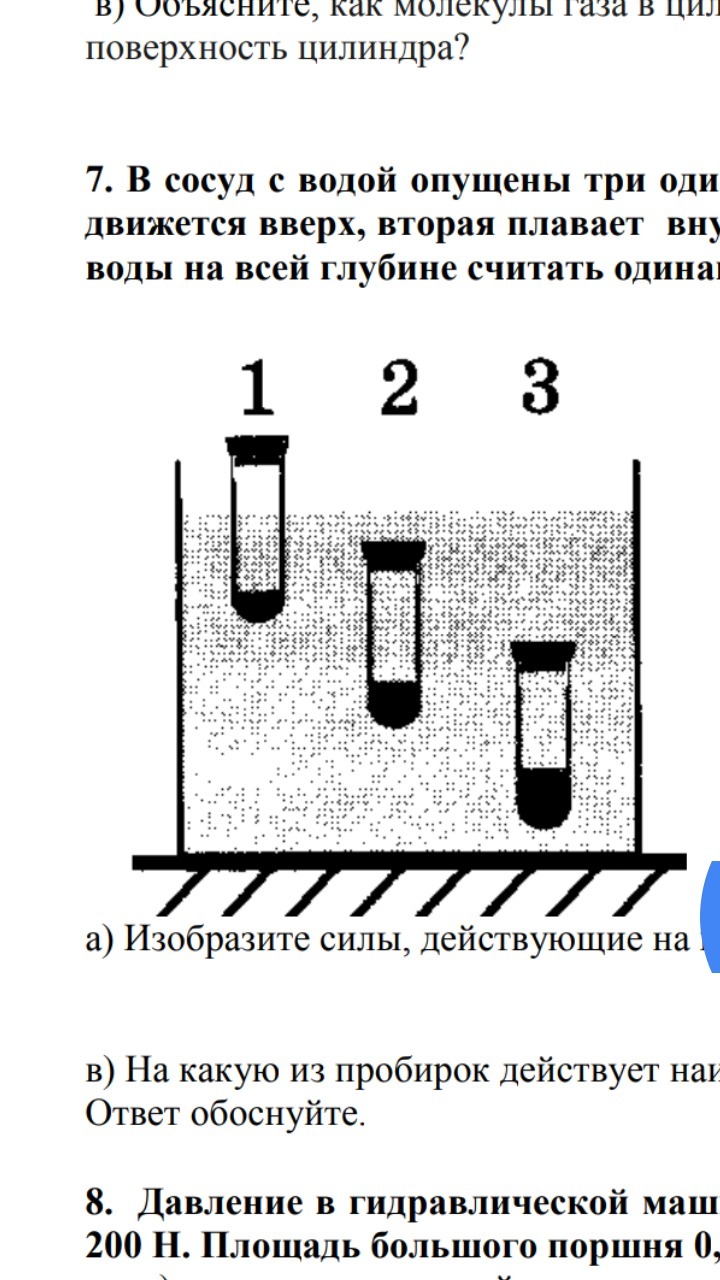 7. В сосуд с водой опущены три одинаковые пробирки с жидкостью. Первая пробирка