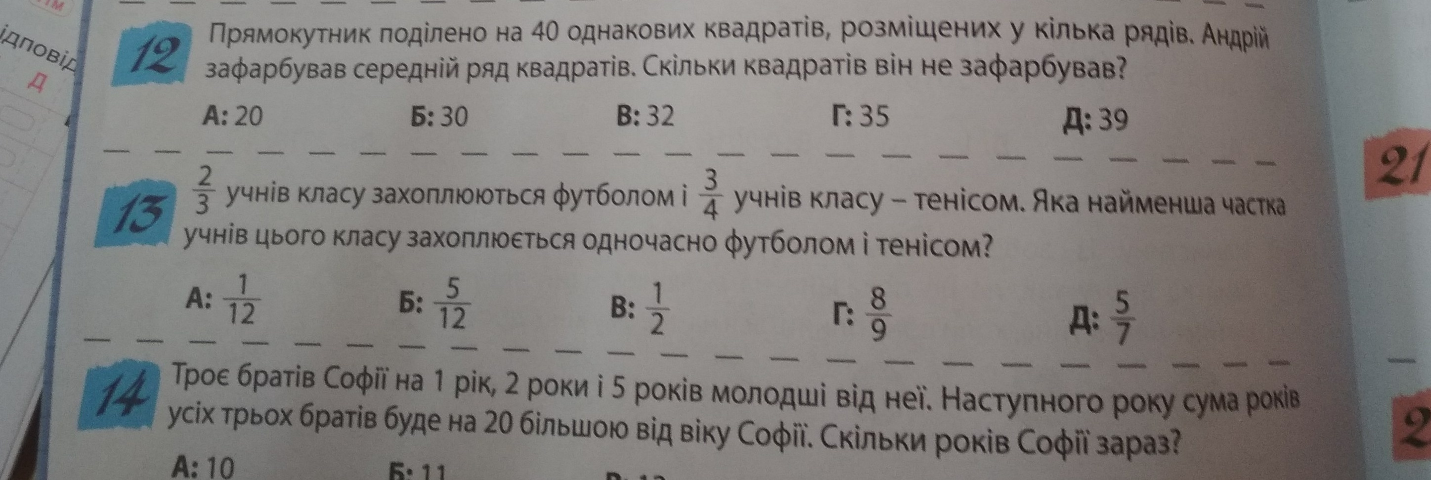 Яка найменша частка учнів цього класу захоплюється одночасно футболом та тенісом ! 13 завдання