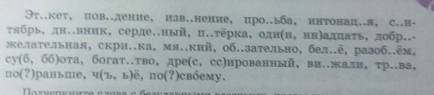 перевірочні слова :извенение,интонация,сентябрь,дневник,сердечный,скрипка,обязательно,мягкий,розобьем,суббота,богатство,трав,чье,по-своему.