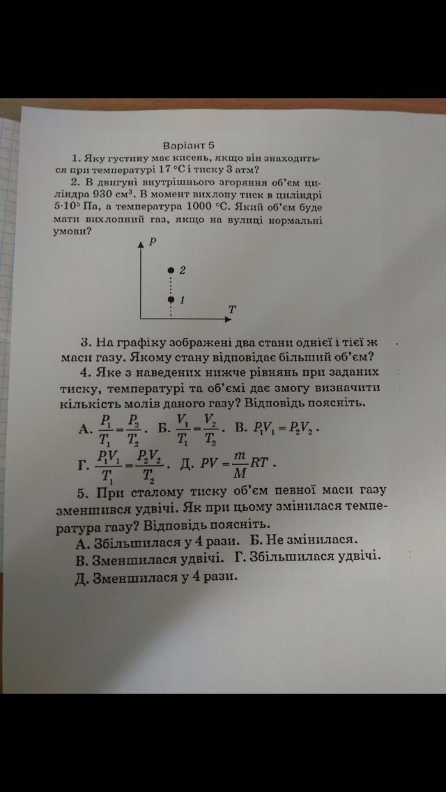 4. m/M = количеству моль. Из управления Д выражаешь m/M = PV/RT