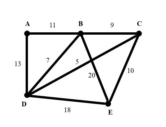 6) A → D → B→ E = 13 + 7 + 20 = 40