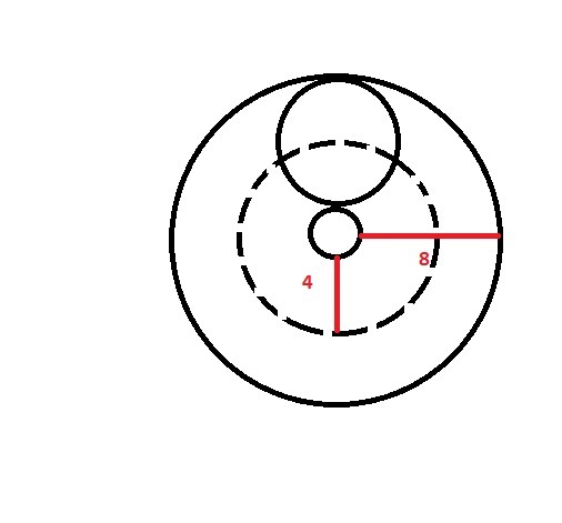 Диаметр вписанного круга в кольцо 8,круг занимает на пунктирной линии чуть меньше 8