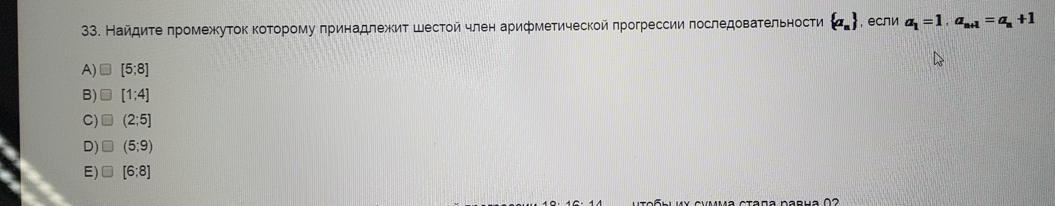 1. Найдите промежуток которому принадлежит шестой член арифметической прогрессии последовательности {an} если a1=1 an+1=an+1