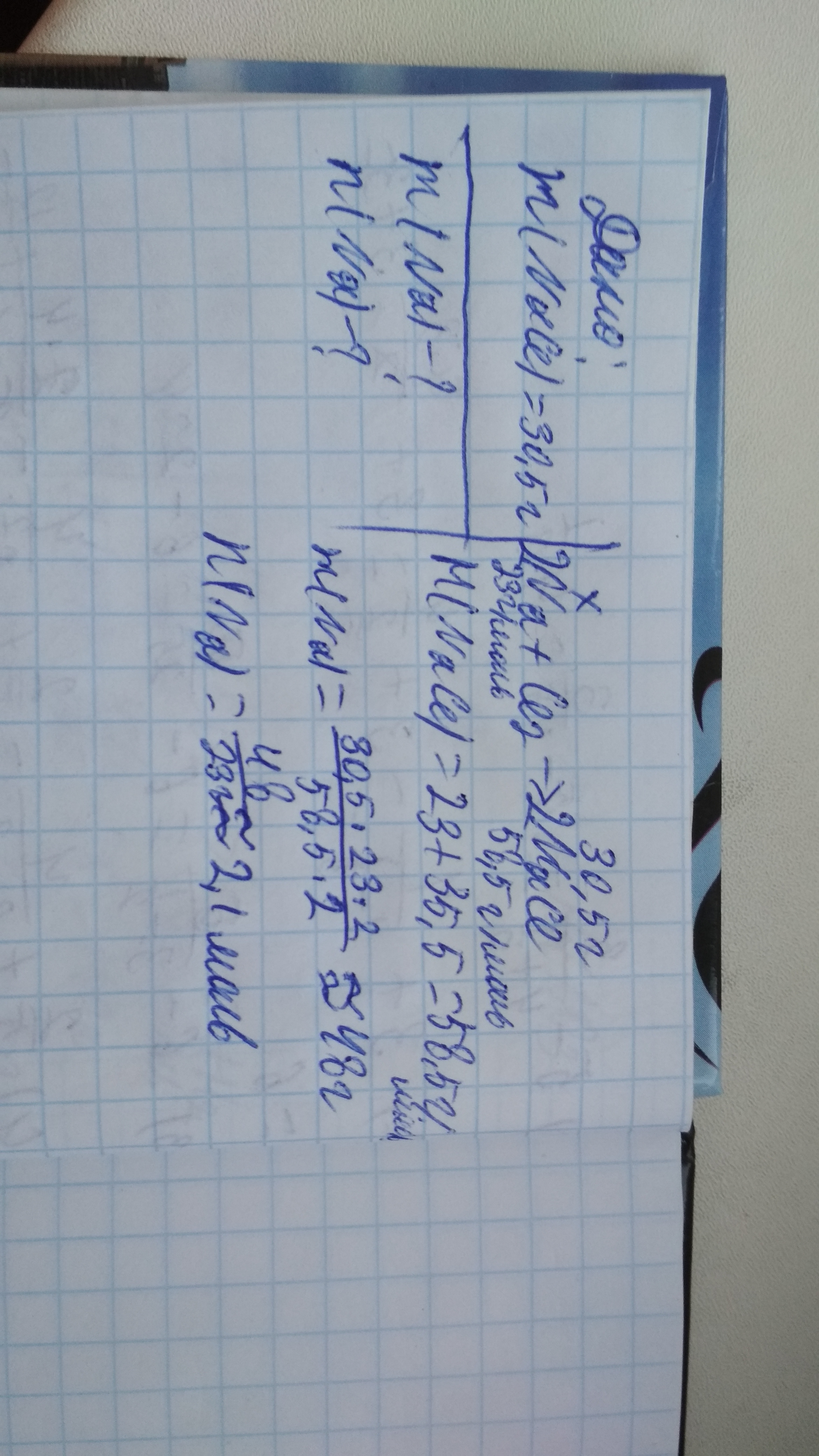 Вычислите массу и кол-во вещества натрия,необходимого для получения 30,5 г хлорида натрия с хлором