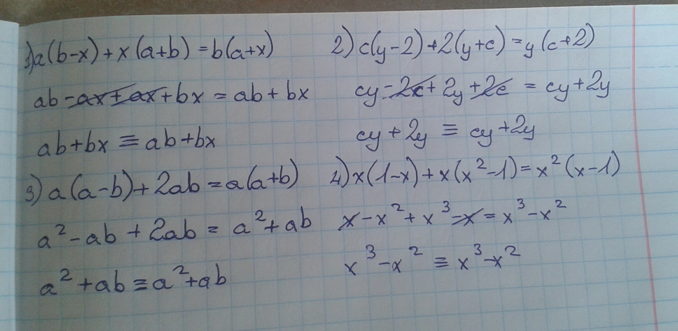 Г) x(1-x)+x(x во 2 степени - 1)=x во 2 степени (x-1)