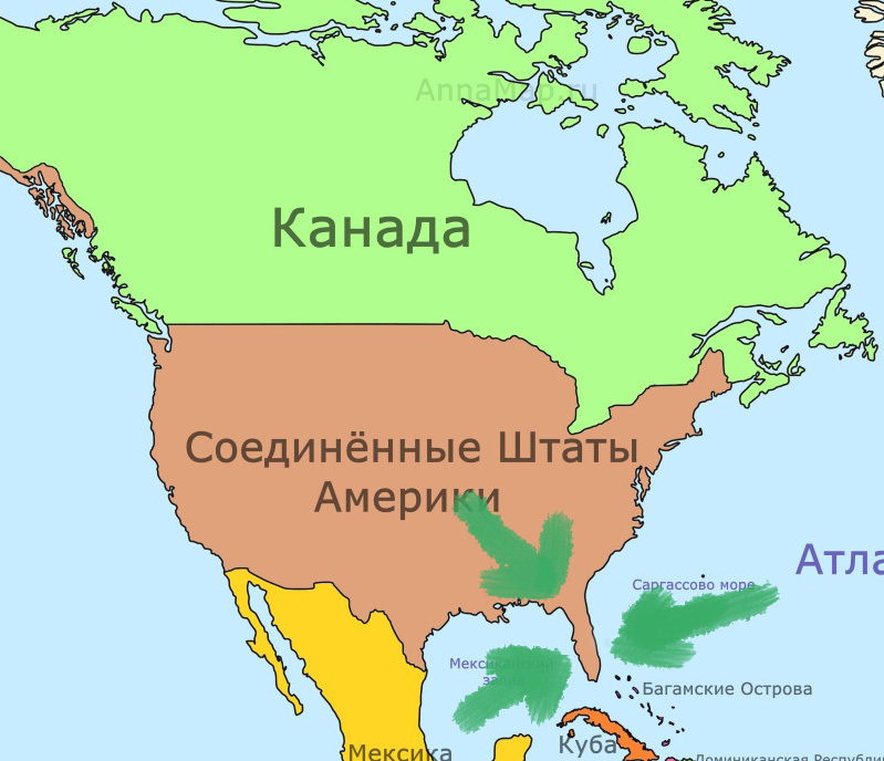 Снизу США. Эдаким хвостиком торчит. Легко запомнить.