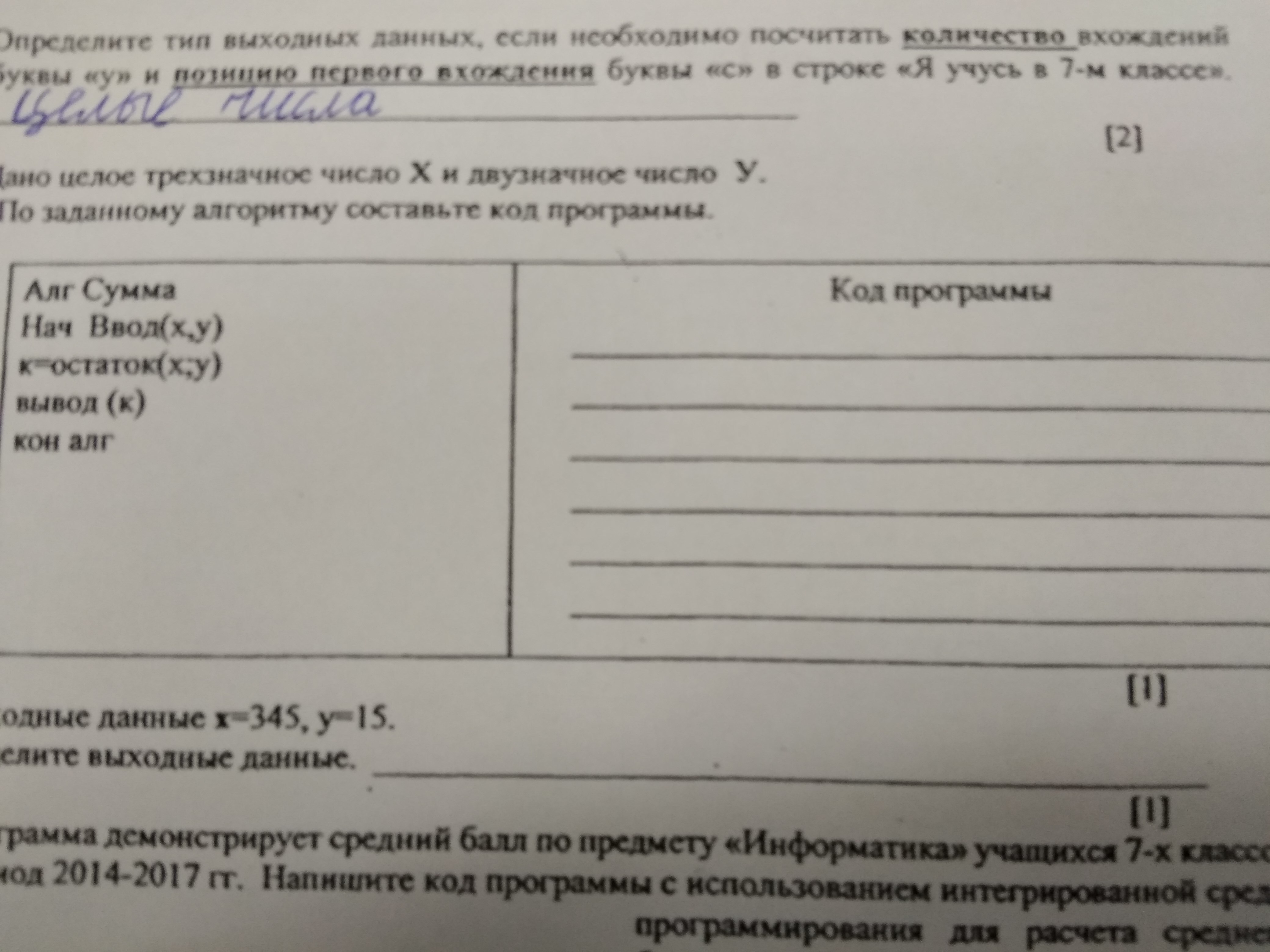 (i)По заданному алгоритму составьте код программы.