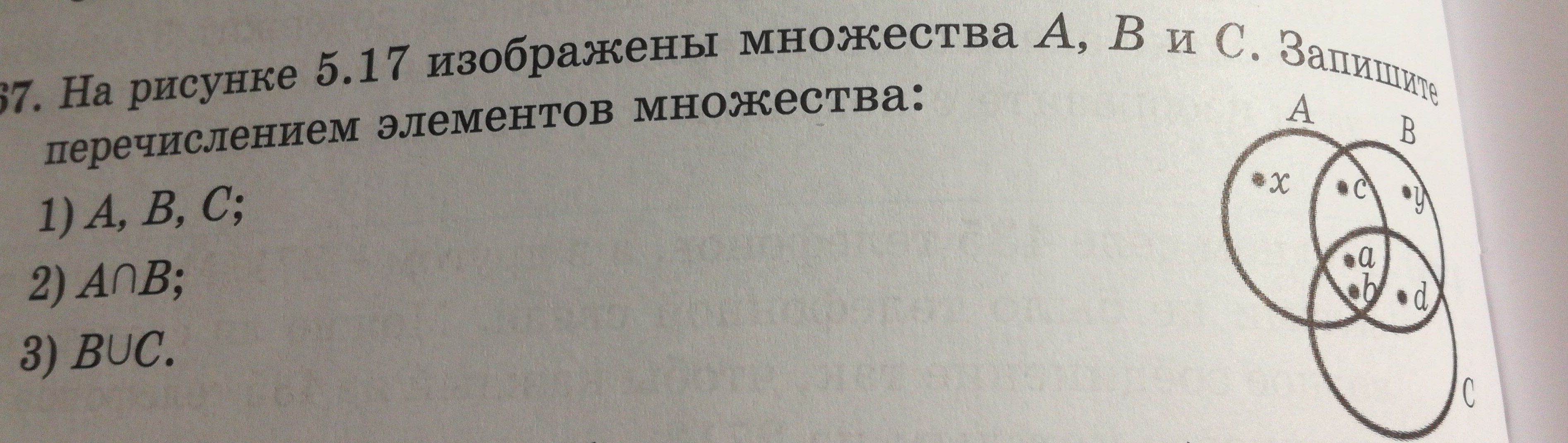 на рисунке 5.17 изображенны множества А Б С запишите перичеслением элементов множества