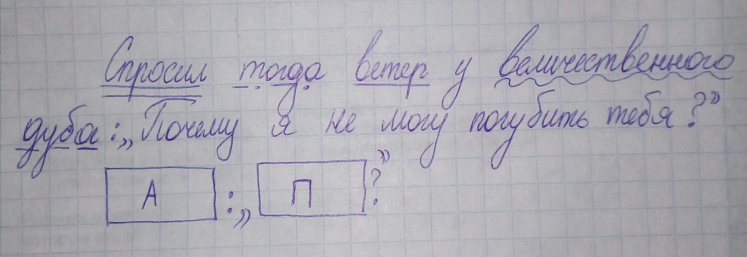 Помогите пж синтаксический разбор предложения спросил тогда ветер у величесвенного дуба:"Почему я не могу погубить тебя?" + схема срочно